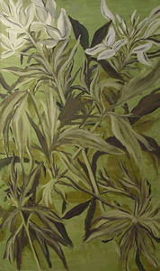 Monochromatic colors allow the dramatic to emerge. This piece will accent any space and serve as a strong visual tension in any room interior. It will also be an added luxury to any area designated as a spa space, as the color and form embodies meditative qualities. This painting will be a valued piece in any home, office, public space or corporate collection.
