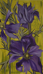 This flower is known to grow on the sides of steep hills and mountains swaying to the wind. Its formal name is Anemone which is Greek for "wind." These flowers are legend to grow in battle fields where soldiers fell. I left one flower on the left partially hidden as it is thought to be an Asian symbol for good luck. This painting will be a valued piece in any home, office, public space or corporate collection.